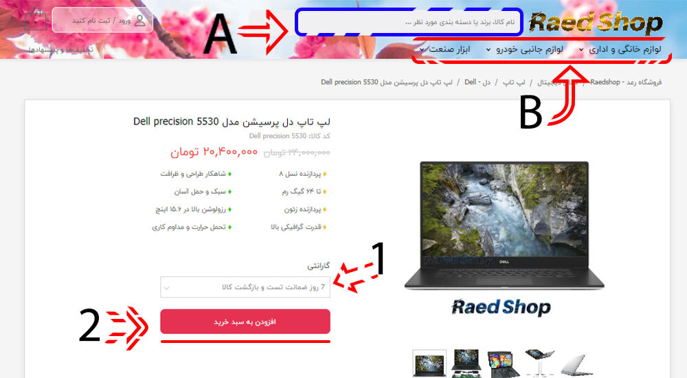 A در ( سربرگ بالای وبسایت ) کادری مبنا بر جستوجو وجود دارد که میتوان با استفاده از نام ، برند ، کاربرد و ... محصول نهایی خود را پیدا کرد .