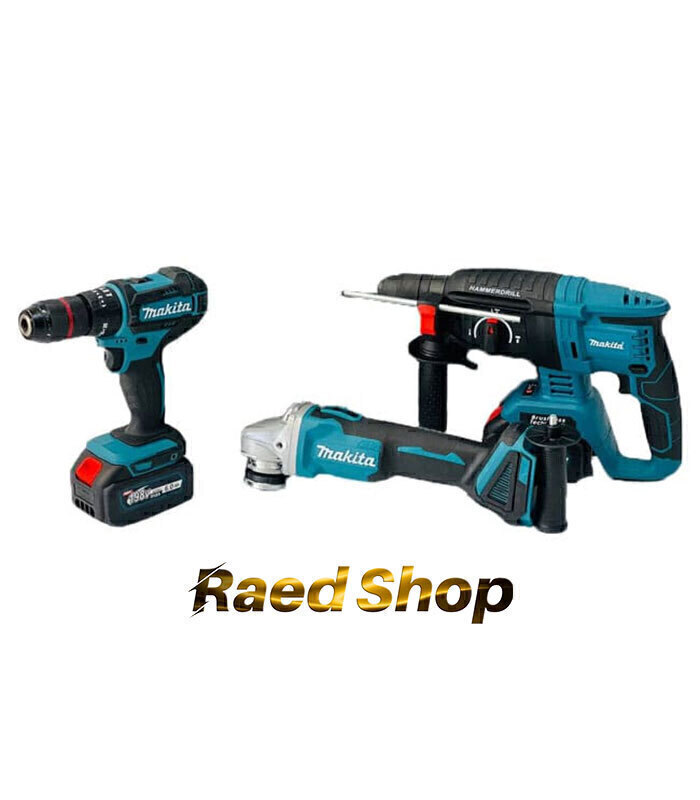 پک سه قلو ابزار ماکیتا شارژی ، هلتی ، دریل ، فرز متوسط مدل 198 ولت براشلس